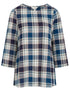 A top made from a beautifully textured cotton viscose blend, featuring a signature Seas4lt yarn-dyed check. Threads are colored before being woven to create a beautifully crafted finish, with the hues here giving a mid-century feel. With a relaxed fit, scoop neckline and 3/4 length sleeves.