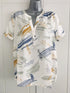 Wearable art in the soft tones of a summer beach, with a relaxed fit and simple shape that brings breezy movement to this joyful print. Wear tucked into simple wide leg trousers or loose over fitted crops. With a fastening button placket at the front, short sleeves and a dipped hem. Length 27in.